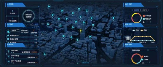 项目以省公司自主研发的智慧工地应用平台为核心,深度融合物联网、大数据等技术,整合人员管理、视频管理、机械设备管理、危大工程管控、绿色施工、物料管理、BIM 建造、指挥中心八大核心模块,全面覆盖工地“人、机、料、法、环”全要素,实现现场数据实时采集、动态监控与智能分析,为项目精细化管理提供技术支撑。