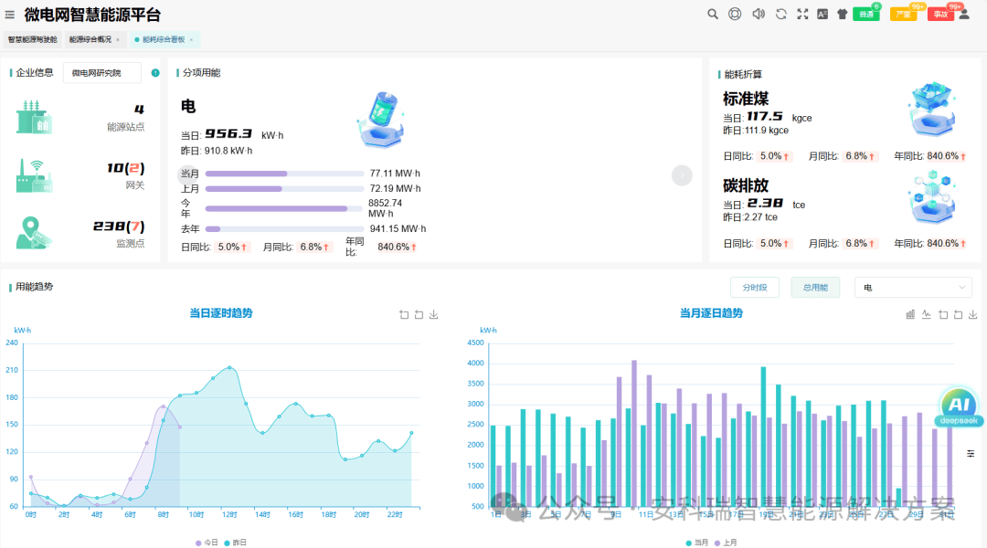 EMS3.0 就像一位不知疲倦的能源 “侦察兵”,通过部署在各个角落的智能传感器、智能电表、水表、气表等设备,如同敏锐的触角,伸向企业能源体系的每一个环节,对电力、水、气、热等各类能源数据进行实时、精准采集 。数据采集频率可达毫秒级,误差率极低,确保了数据的准确性和时效性。无论是大型工业设备的电力消耗,还是办公楼宇的照明、空调用电,亦或是园区内的用水、用气情况,都逃不过它的 “火眼金睛”。并且,它还能采集分布式能源的数据,比如光伏发电量、储能系统的荷电状态(SOC)等,实现对能源数据的全方位监测。管理者只需登录系统,就能在电脑或手机端实时查看各类能源数据,能源使用情况一目了然。